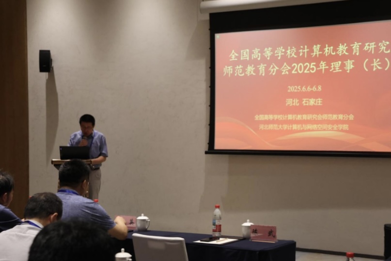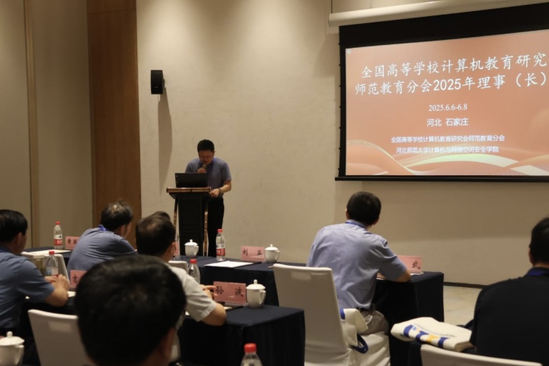 2025年6月6日-8日,“全国高等学校计算机教育研究会师范教育分会2025年学术沙龙&理事长会”在河北省石家庄市成功举办。本次会议由全国高等学校计算机教育研究会师范教育分会和永利yl23411官网共同主办,来自分会理事长单位的计算机教育领域专家、学者齐聚一堂,共同围绕人工智能如何赋能教育创新,增进高等教育院校创新人才培养、计算机教育研究及一流课程建设等前沿话题展开深入研讨与交流。分会理事长陈武教授,永利yl23411官网党委常委、副校长刘英教授出席会议并致辞,永利yl23411官网相关领导及多位教师代表参加。